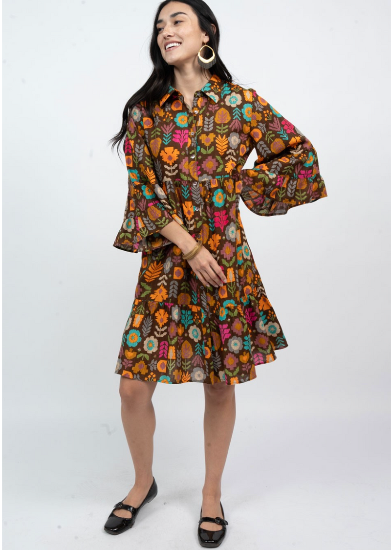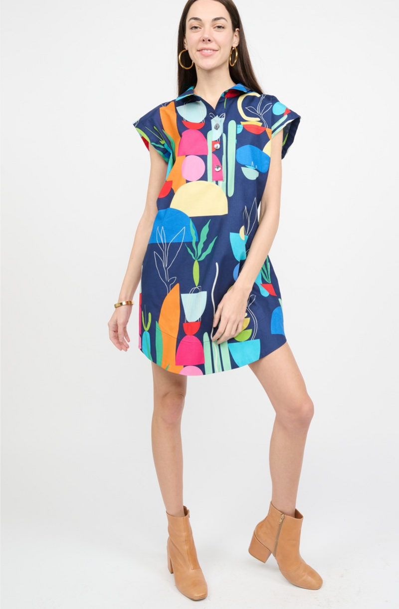 Uncle Frank - Navy Multi Color Geo Print Shirt Dress