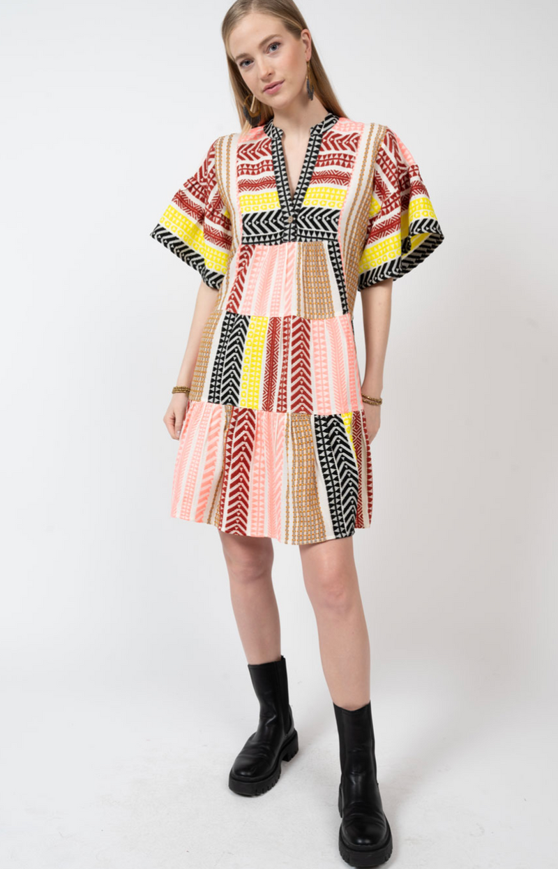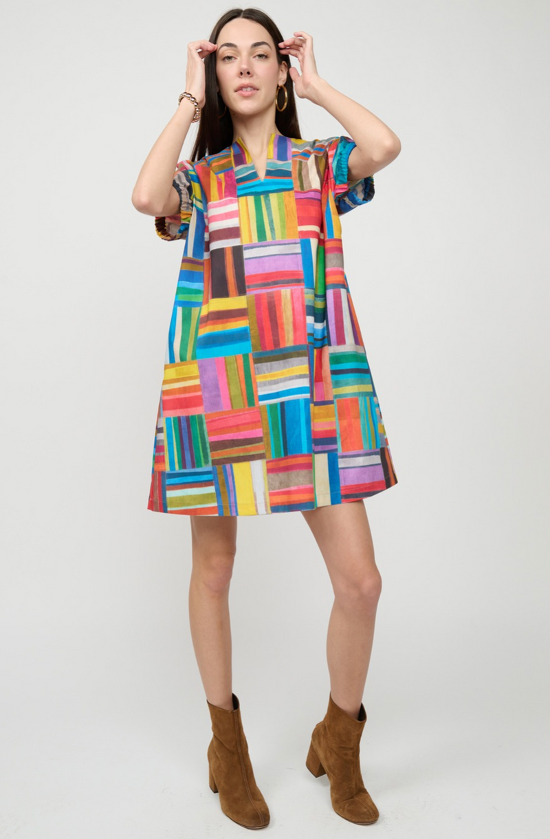 Uncle Frank - Multi Color Stripes and Squares Pattern Dress