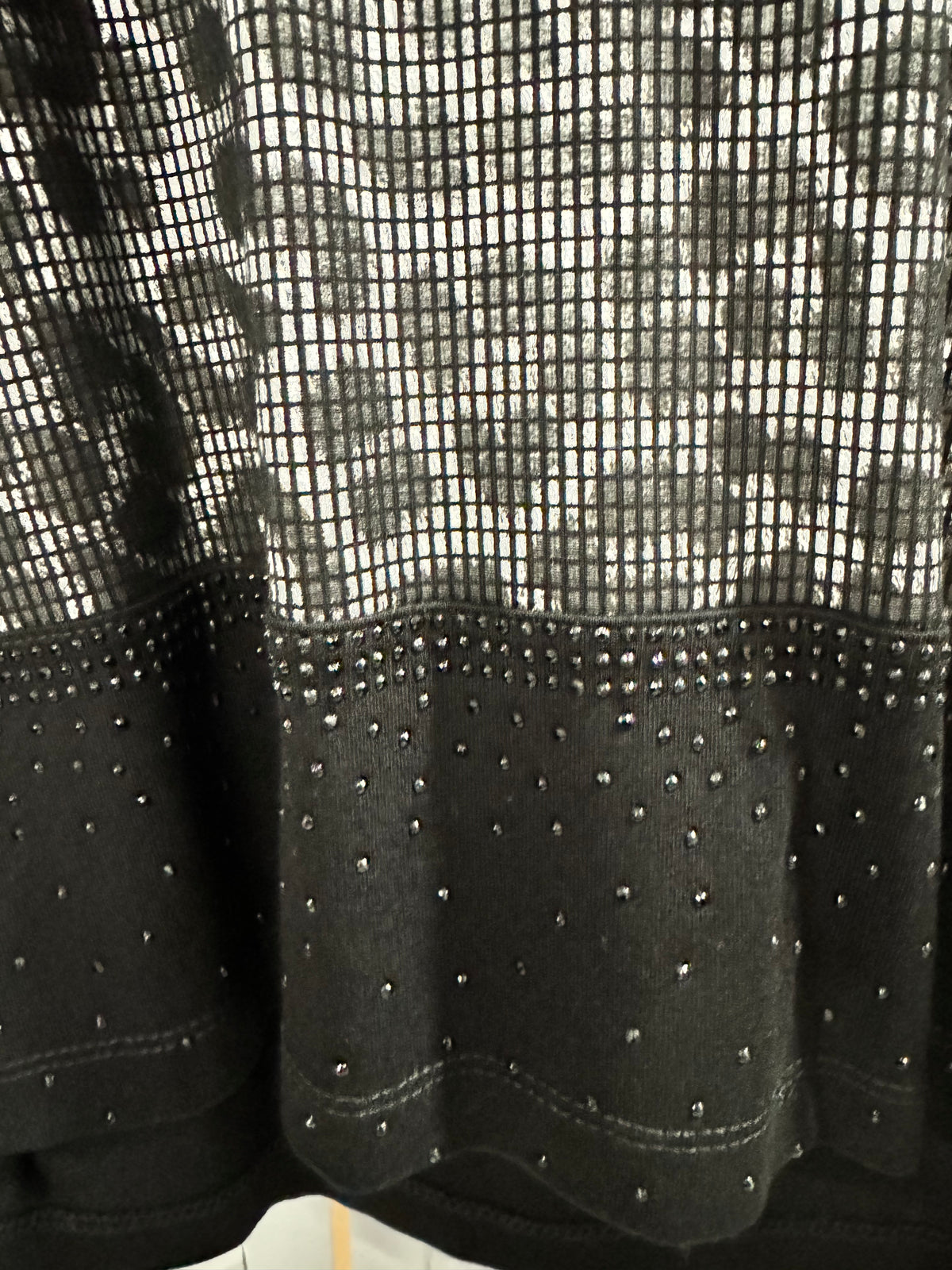 Elevated comfort in this long sleeve pullover with silver cheetah print details and bling. Run your errands in style.