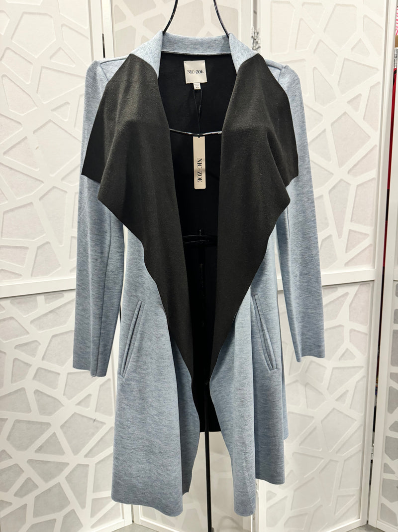 Nic + Zoe Ponte Knit Long Sleeve Pocketed Light Blue Draped Front Jacket