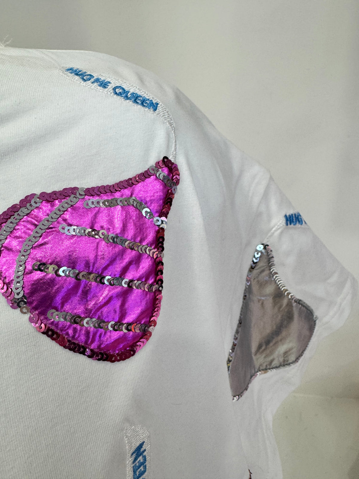 Shine bright like the royalty you are in this glittery chocolate-themed tee! Featuring shimmering embellishments that catch the light, this playful Valentine's Day essential celebrates your love of all things sweet and sparkly. The fun chocolate kisses design pairs perfectly with your most glamorous accessories for a look that's equal parts cheeky and chic. Perfect for spreading love and laughter this season.