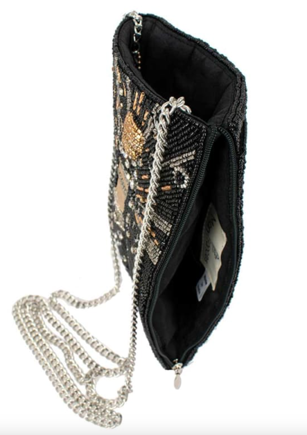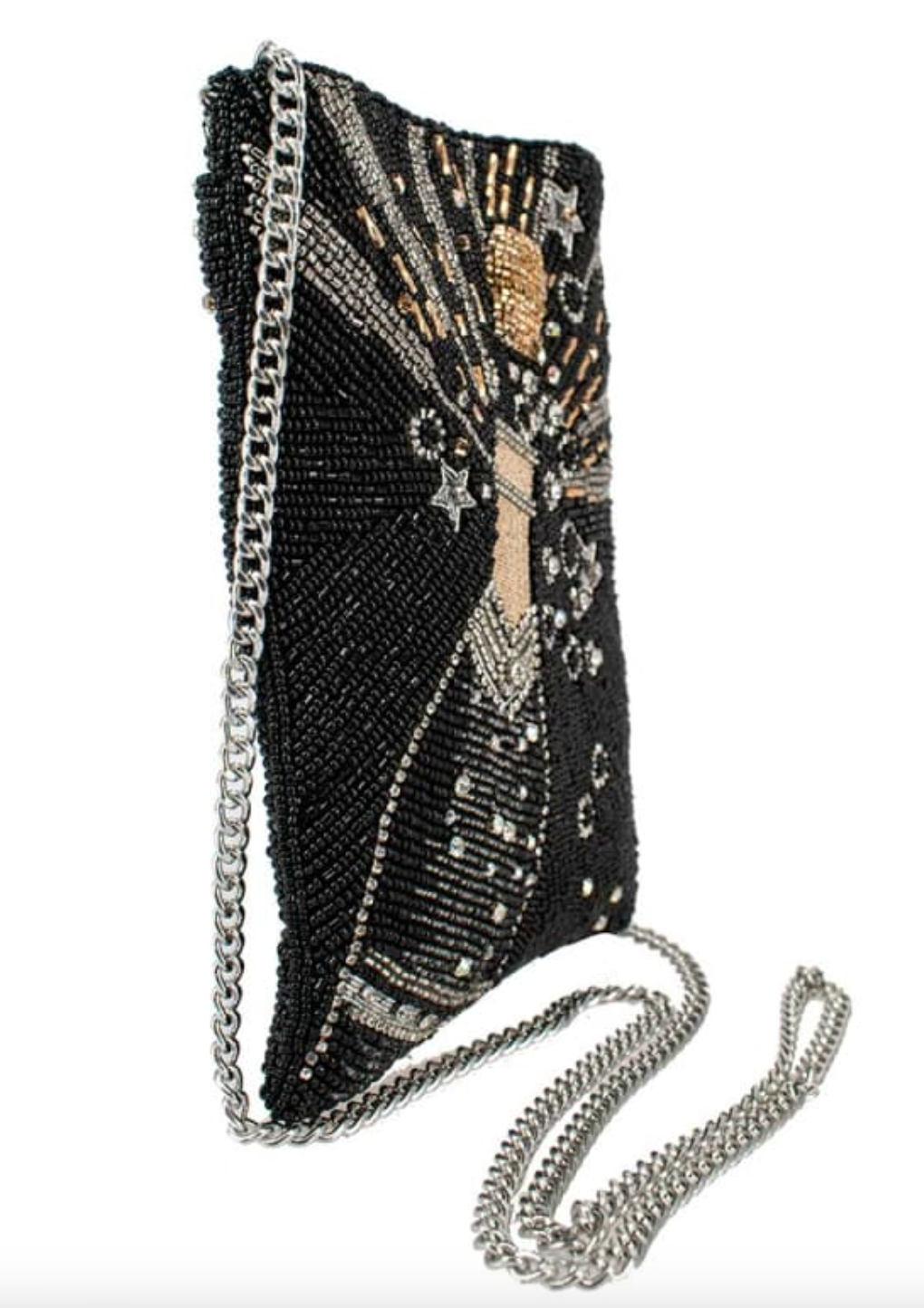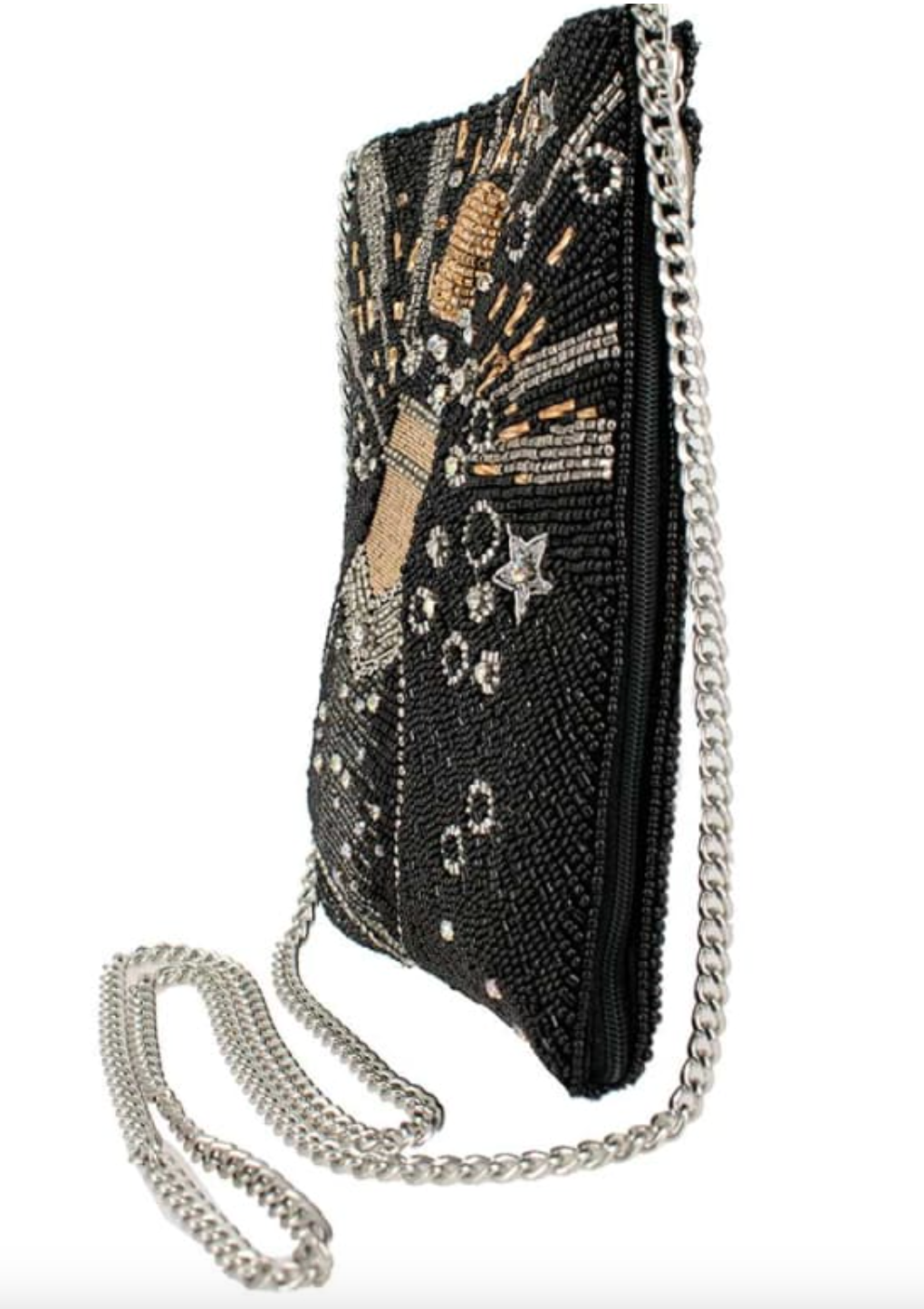 This mini handbag has it all! The classic hand-beaded champagne design is perfect for any size celebration or girls night out. Slide your phone in the top slip pocket and store eye-glasses and all your essentials in the side zip pocket.