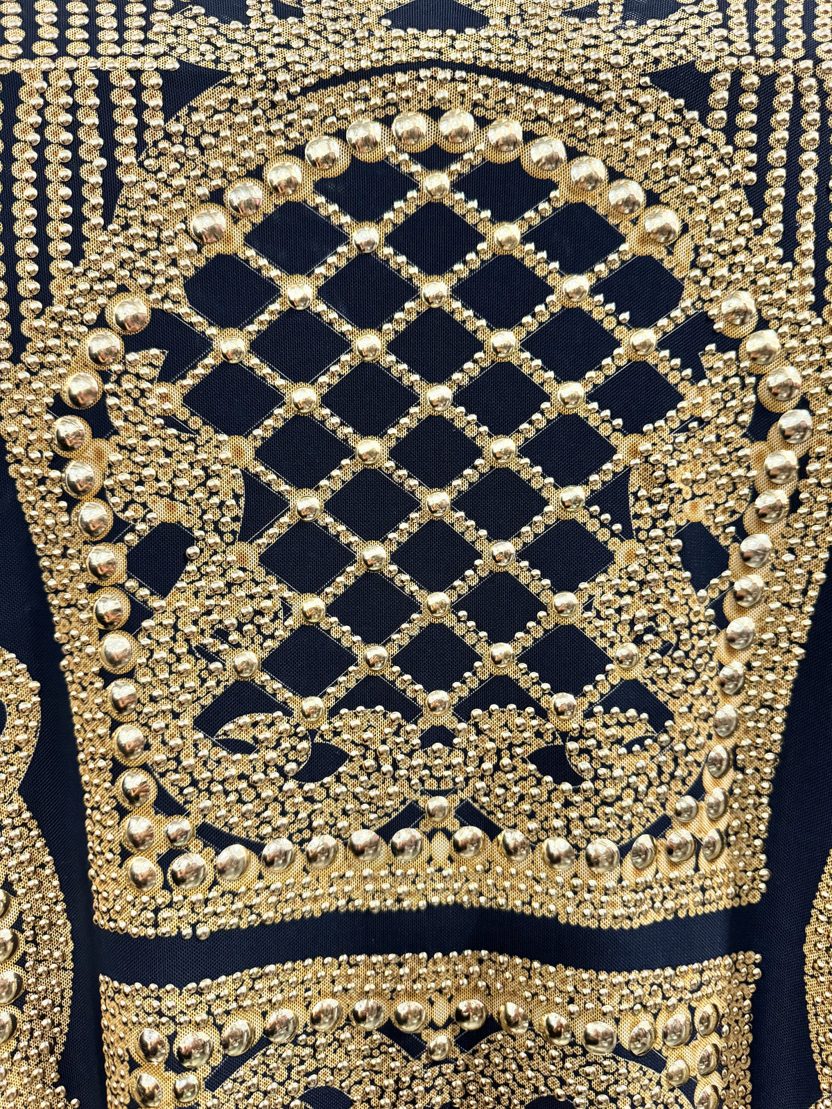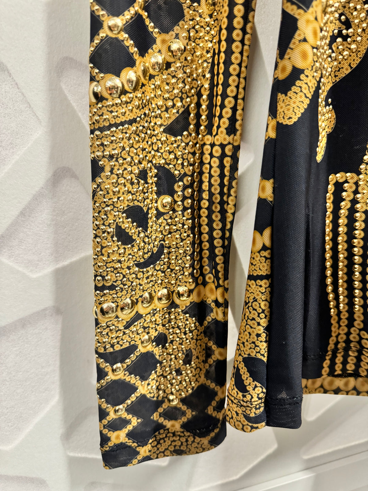 Add a touch of elegance with our Art Deco Elaborately Embellished Top! This fitted top is made of light weight mesh and features delicate beaded details. The hidden back zipper ensures a flawless fit. Dress it up or down for any occasion.