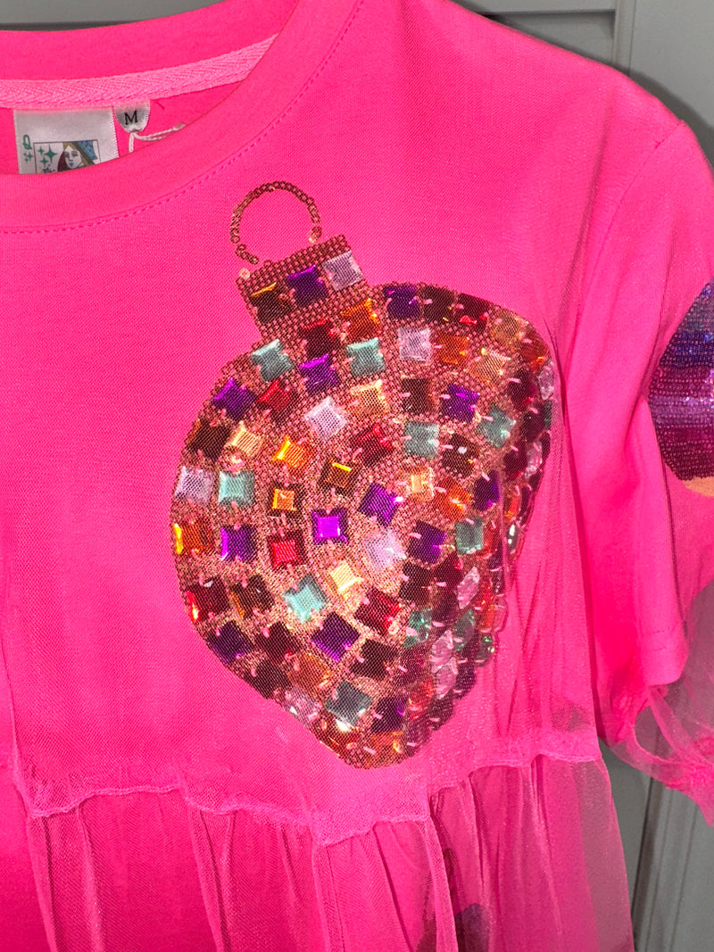 Queen of Sparkle - Hot Pink Mesh Ornament Dress