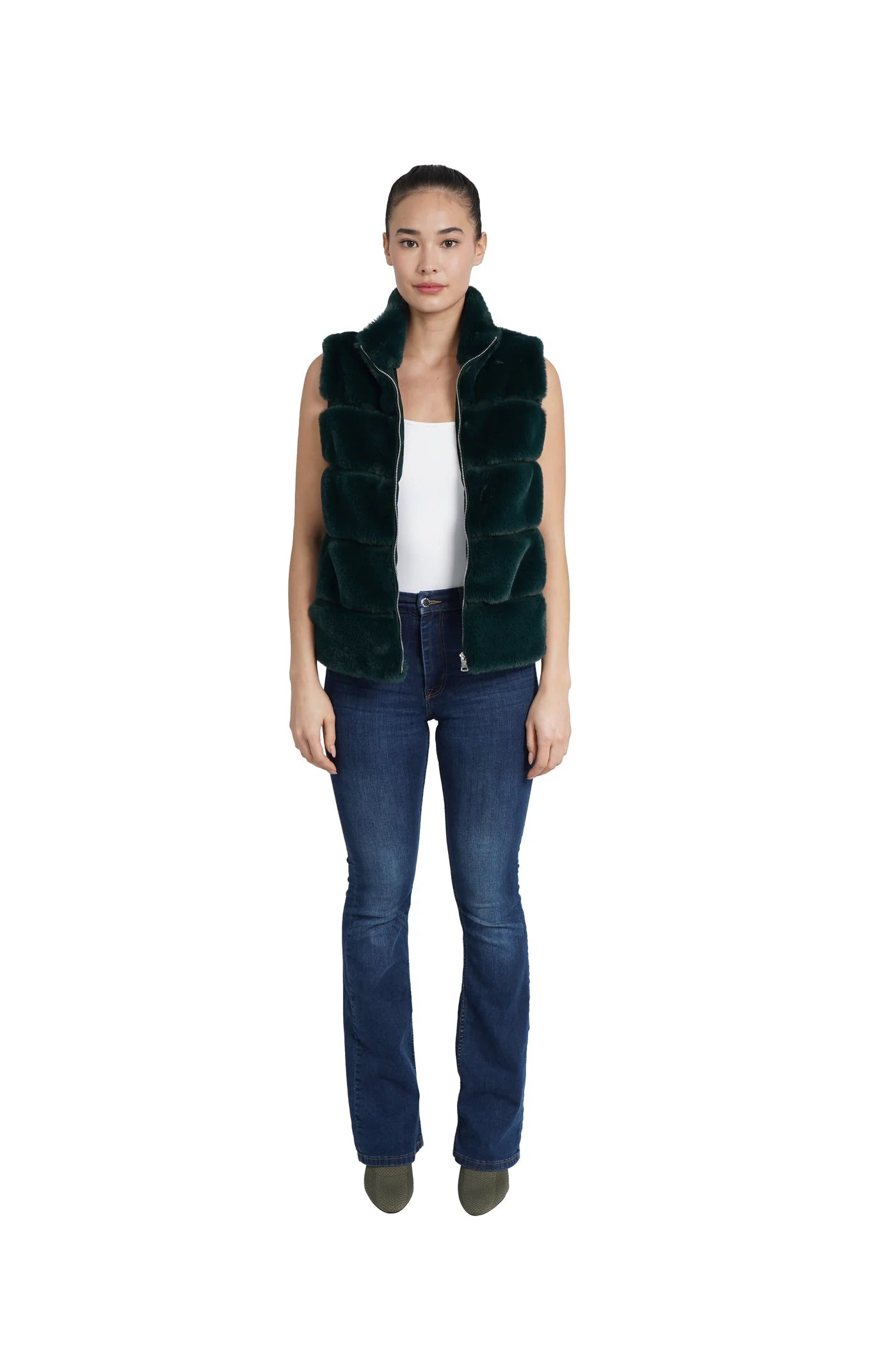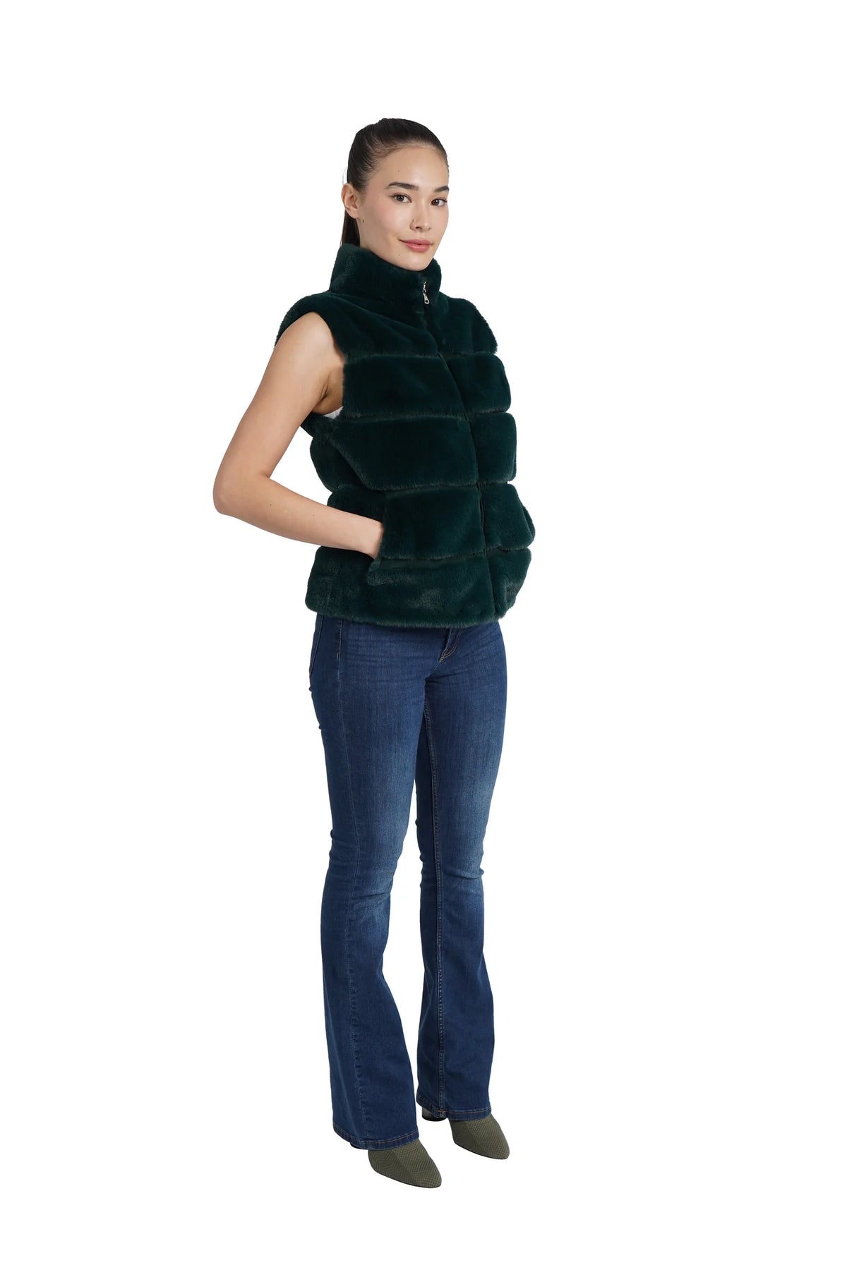 Embrace boldness with the vibrant Love Token Faux Fur Vest. Featuring a super soft texture, full zip front, and 2 working slit pockets for convenience. Stand out in style with its eye-catching deep emerald color and trendy stand collar. Look fierce and feel cozy in this must-have vest!