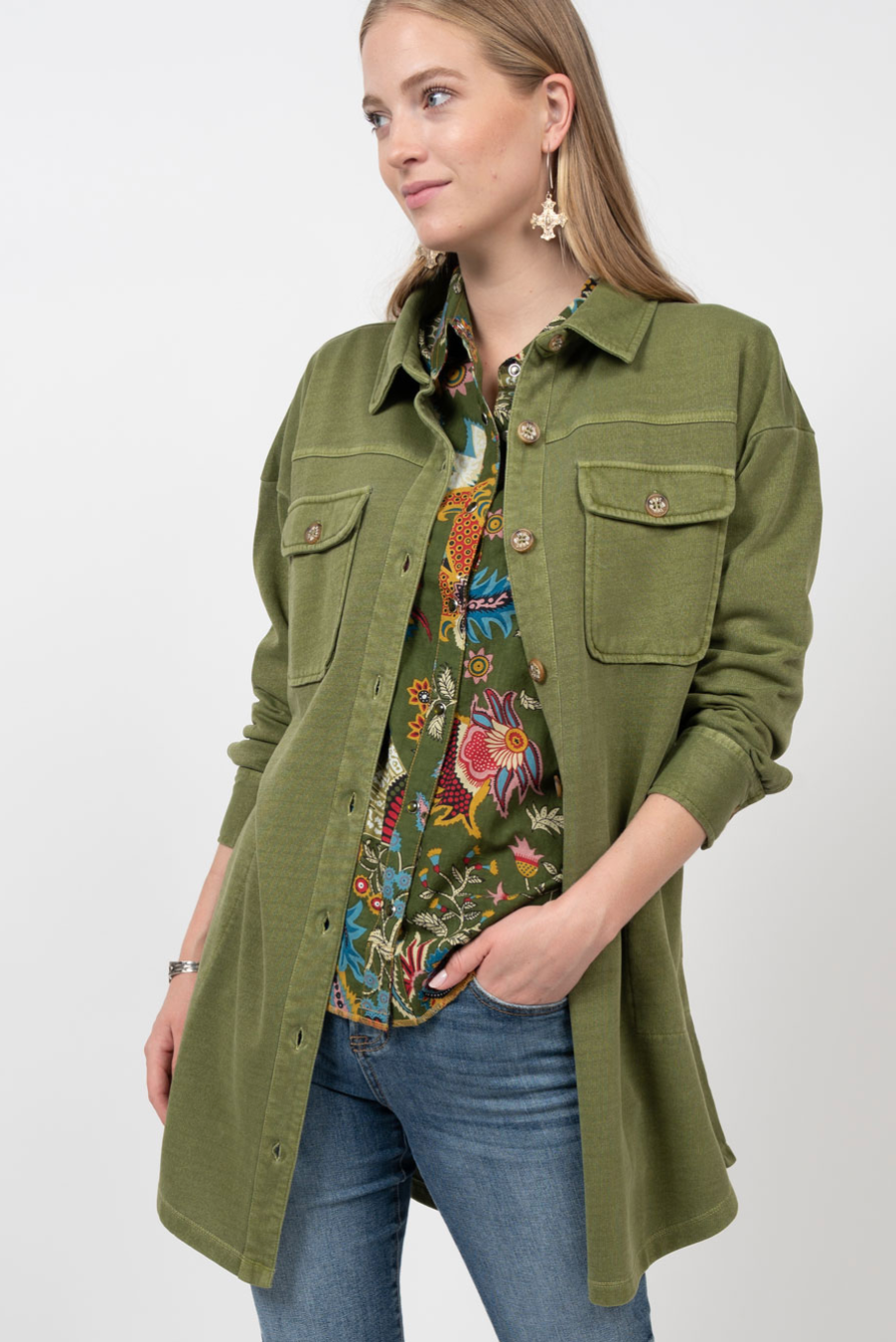 Ivy Jane - Olive Button Down Denim Jacket Dress