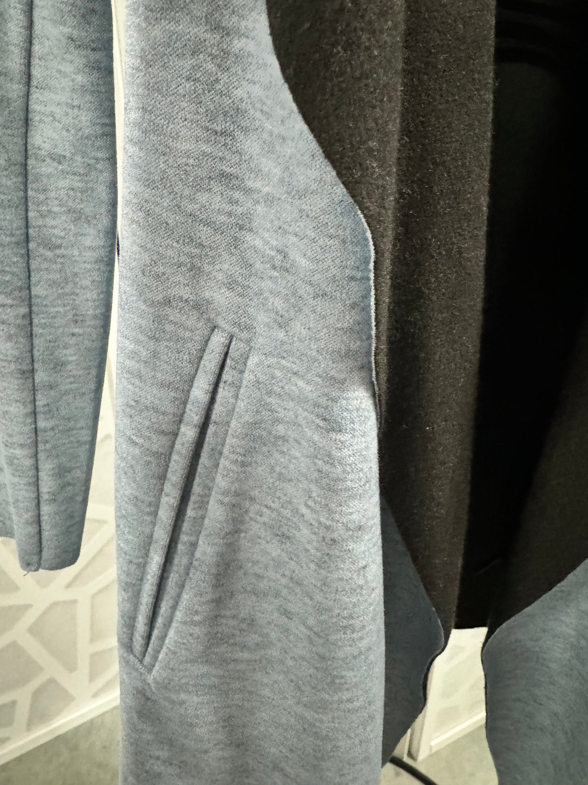 Nic + Zoe Ponte Knit Long Sleeve Pocketed Light Blue Draped Front Jacket