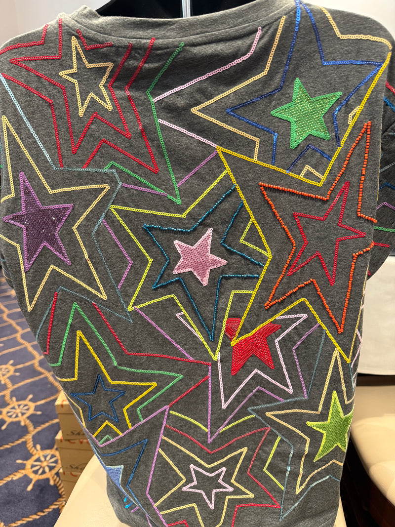 Queen of Sparkles - Multi Star Studded Grey Tee