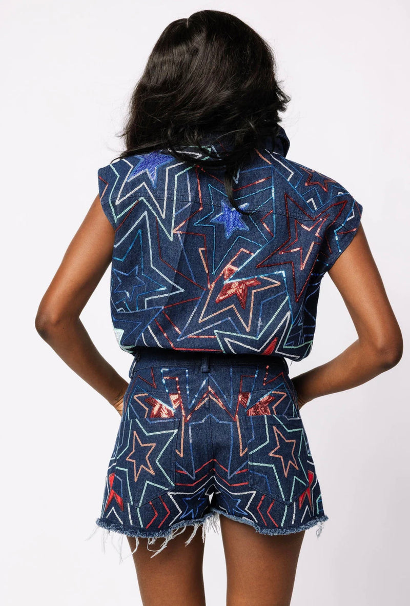 Queen of Sparkles - Denim Star Romper