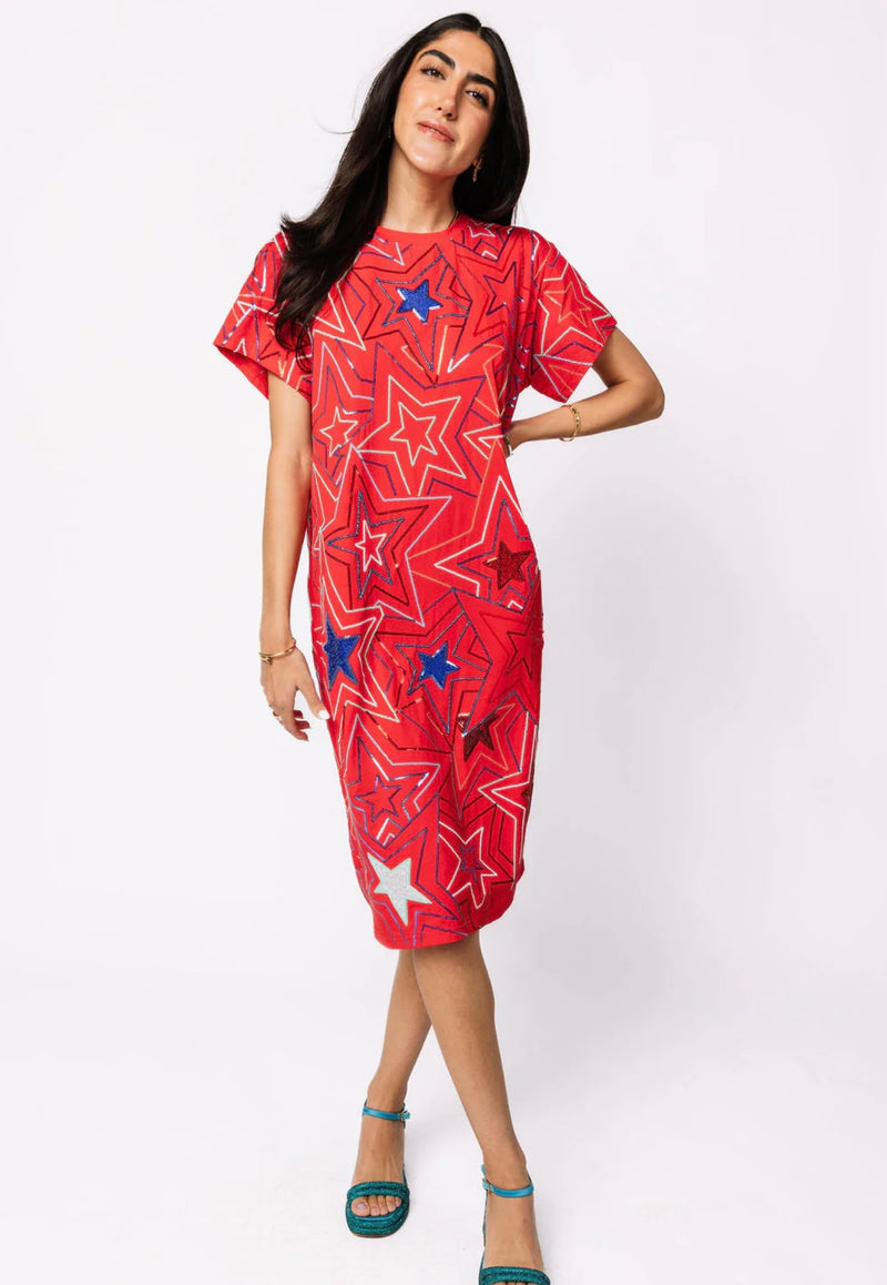Queen of Sparkles - Red, White, Blue Star Midi Tee Dress
