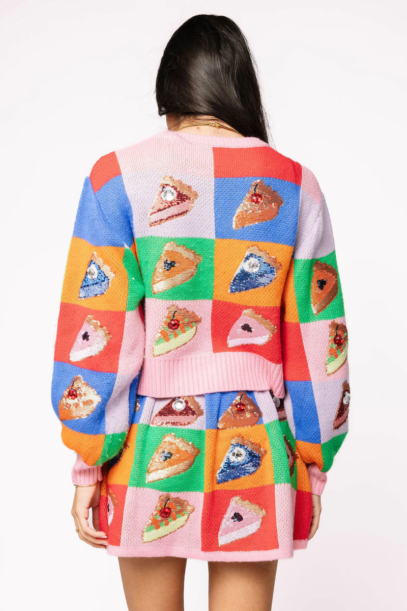 Queen of Sparkles-Rainbow Colorblock Piece of Pie Button Up Sweater