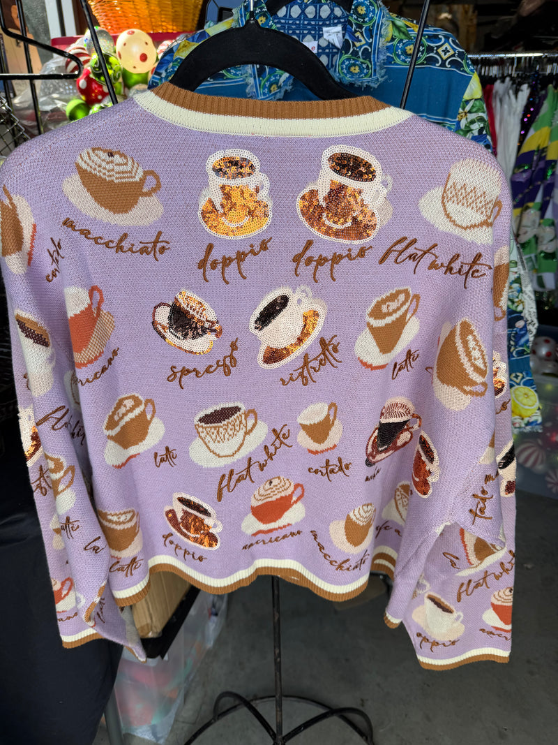 Queen of Sparkles - Lavender Tie Front Coffee Cardigan