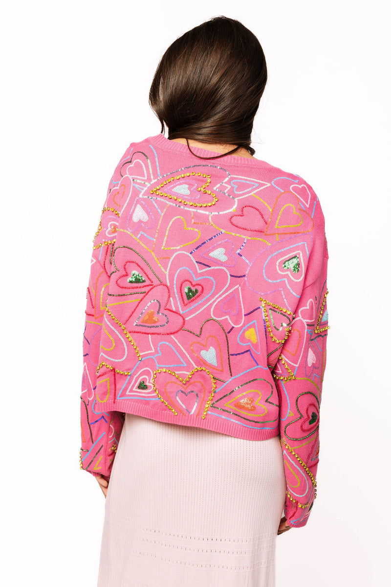 Queen of Sparkles - Pink Multi Hearts Tie Cardigan