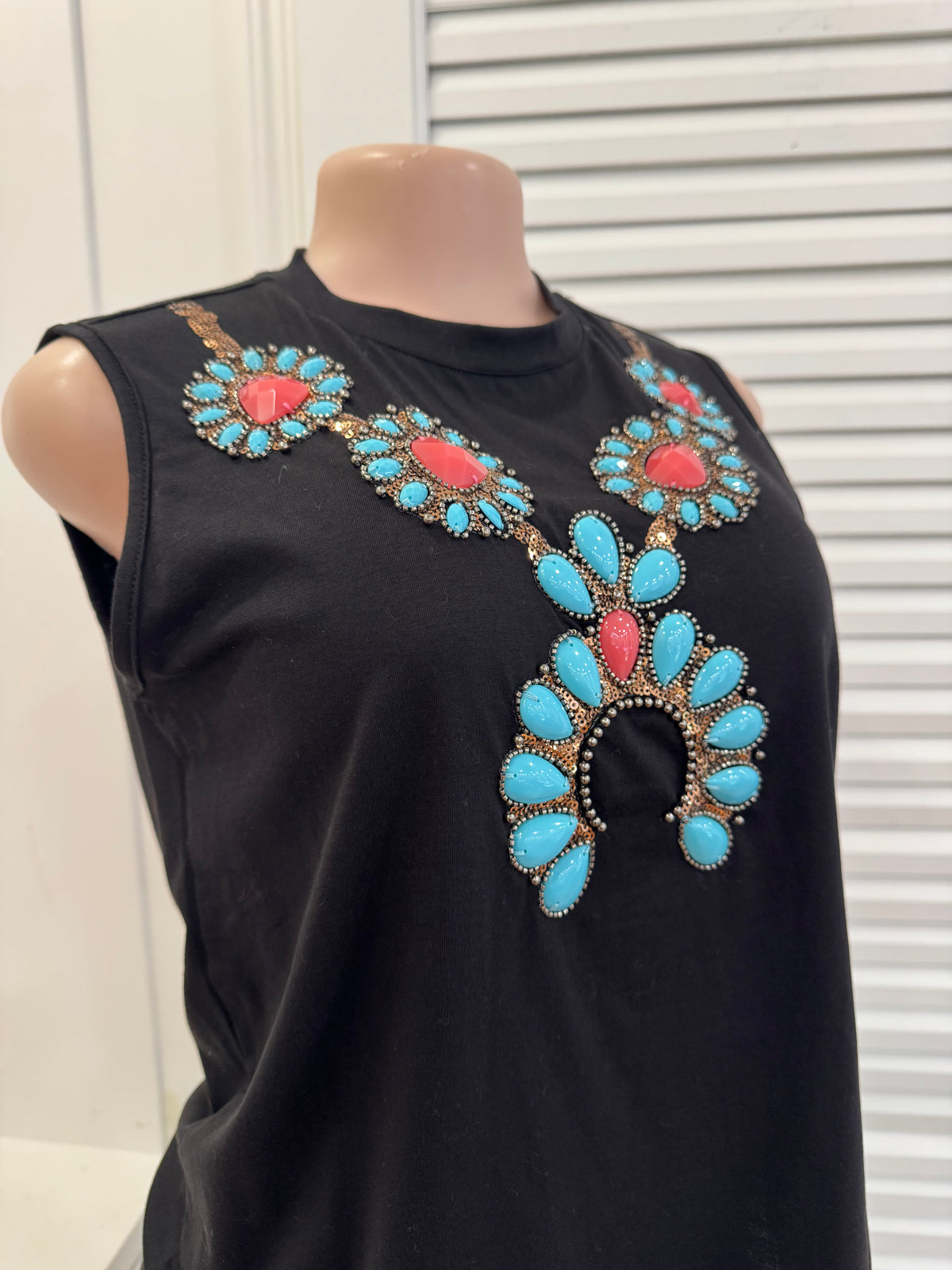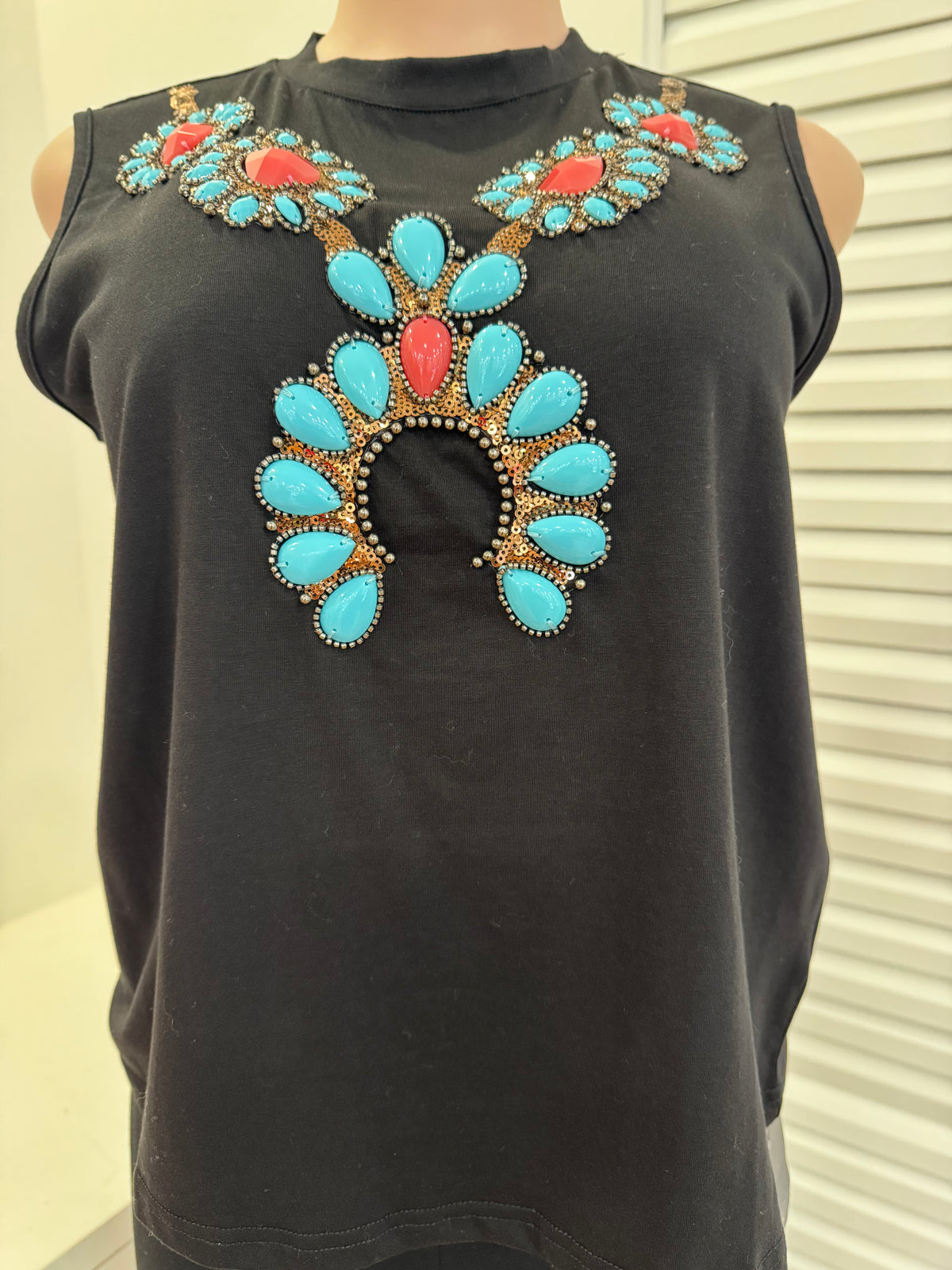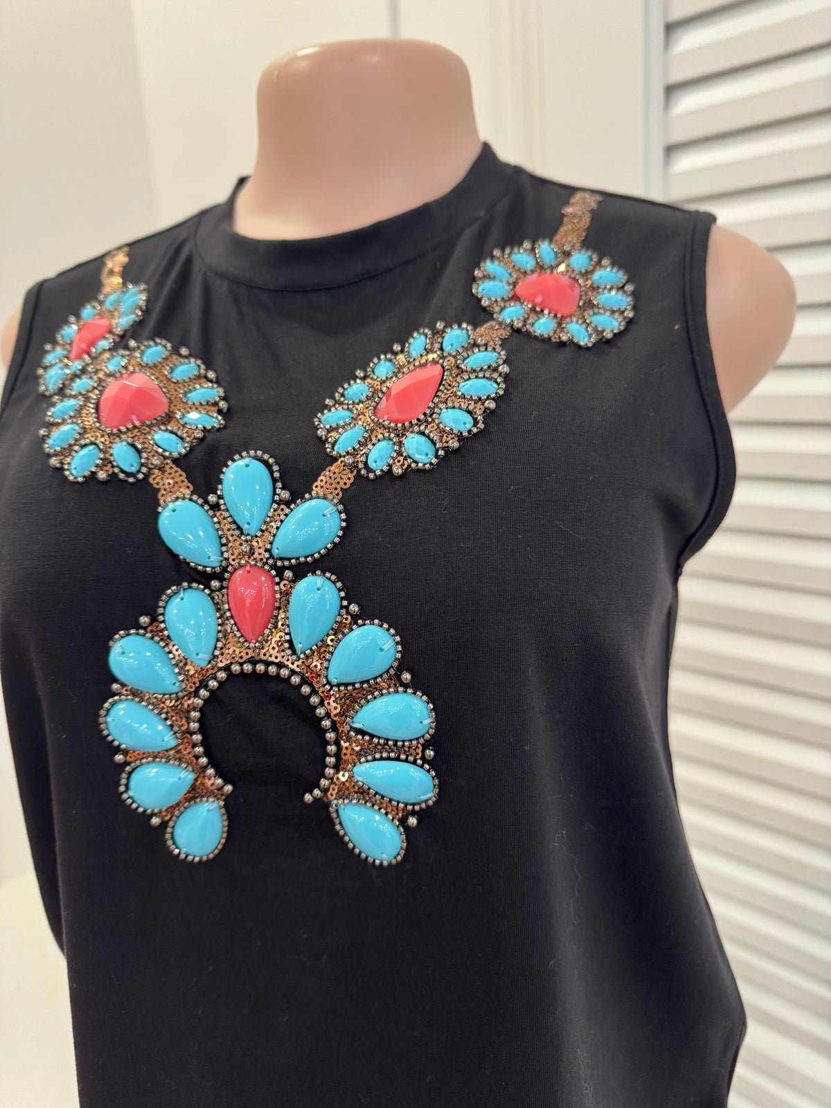 Queen of Sparkles-Black Turquoise Necklace Tank