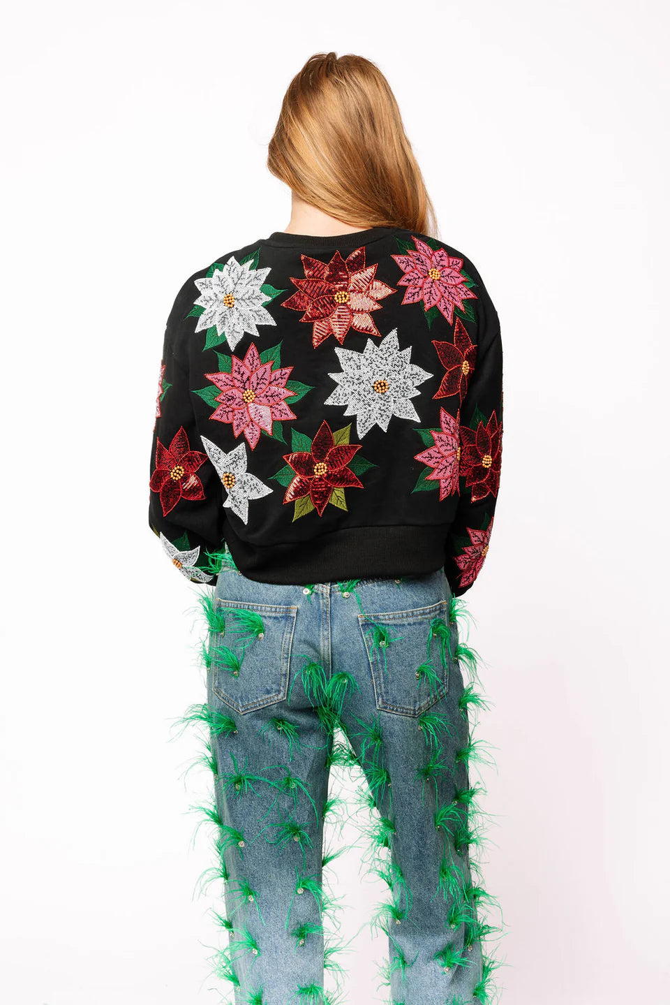 Queen of Sparkles-Black Poinsettia Cropped Sweatshirt